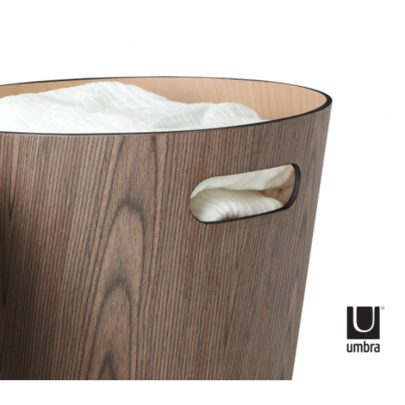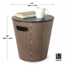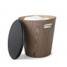 Woodrow é uma versão contemporânea e elegante do otomano típico com seu belo acabamento em madeira natural e forma geométrica, construída com madeira tratada, dobrada em uma forma cilíndrica cônica.