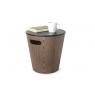 Sua tampa removível funciona como tampo de mesa ou assento, e suas alças integradas facilitam a movimentação pela casa.