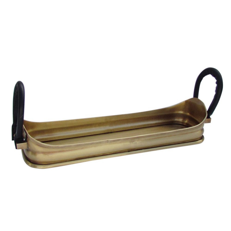 Bandeja Metal Ouro Velho com Alças em courino preto