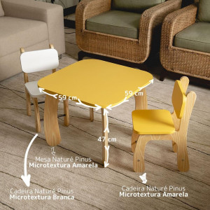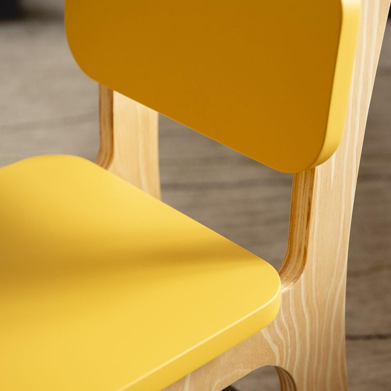 Cadeira infantil com estrutura em madeira multilaminada com acabamento em verniz fosco soft touch atóxico, com assento e encosto em MDF (Medium Density Fiberboard) com acabamento em microtextura atóxica. Produto entregue montado.