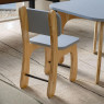 Cadeira infantil com estrutura em madeira multilaminada com acabamento em verniz fosco soft touch atóxico, com assento e encosto em MDF (Medium Density Fiberboard) com acabamento em microtextura atóxica. Produto entregue montado.