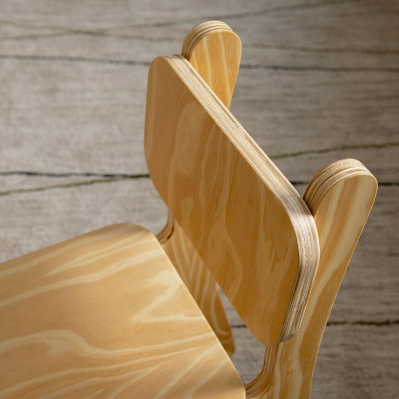 Cadeira infantil com estrutura, assento e encosto em madeira multilaminada com acabamento em verniz fosco soft touch atóxico. Produto entregue montado.