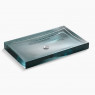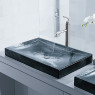 Cuba de apoio retangular fabricada em vidro com cantos levemente arredondados.