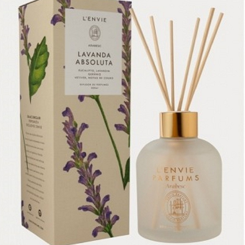 O Difusor de Perfume Lavanda Absoluta 200ml é indicado para a perfumação de todos os ambientes, seja em casa ou no escritório. Com uma nova identidade visual a linha Arabesc traduz suas fragrâncias por meio de aquarelas desenhadas nas embalagens. As ilustrações foram feitas por Bella Mary O’Mahony, ilustradora apaixonada pela natureza e residente na Nova Zelândia.