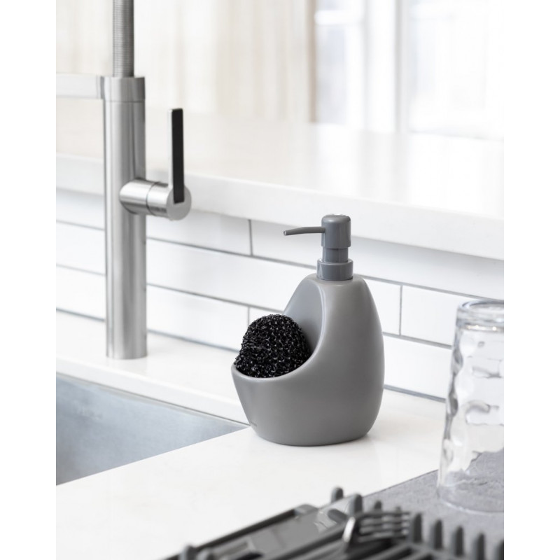 O caddy embutido do Joey mantém os fundamentos da sua cozinha como um scrubby (incluído) bem organizado, enquanto ao mesmo tempo oferece fácil operação da bomba com uma mão devido ao seu material cerâmico robusto e pesado.