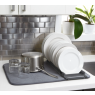 Esteira de microfibra superabsorvente: A combinação perfeita de forma e função, a esteira de microfibra da UDry absorve a água da secagem de pratos e, ao mesmo tempo, protege sua bancada contra arranhões e acúmulo de água.