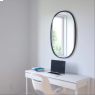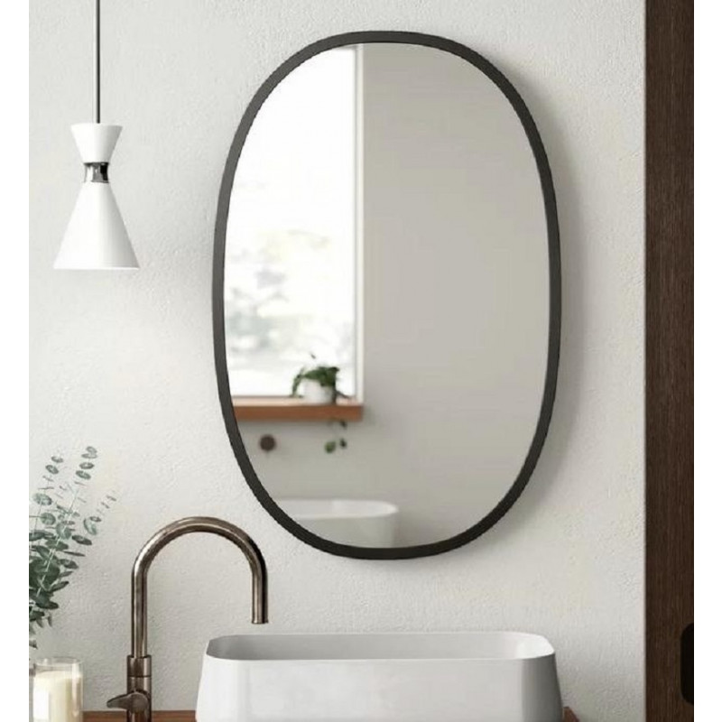Espelho oval grande: disponível em tamanhos de 18 x 24 ou 24 x 36 polegadas, o espelho oval Hub é um grande espelho oval com uma moldura de borracha contemporânea que fica bem em qualquer ambiente