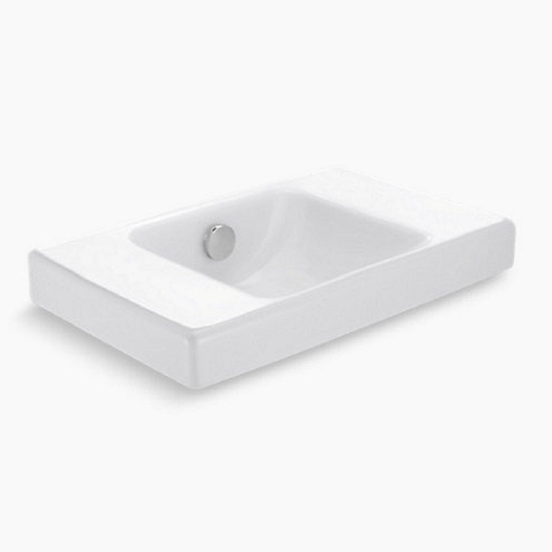 CARACTERÍSTICAS:Lavatório suspenso fabricado em louça sanitáriaDesign retangularCom ladrão e tampa do ladrão em cromado polidoComponente adicional incluído: Kit de montagem