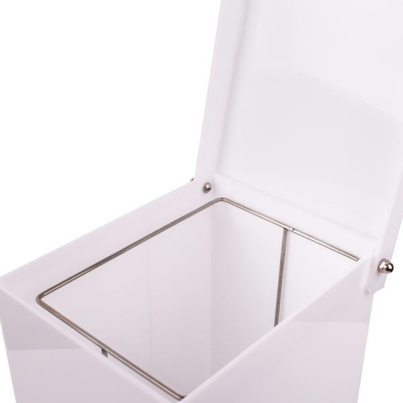 Lixeira quadrada alta com tampa articula em acrílico com suporte interno para saco plástico.