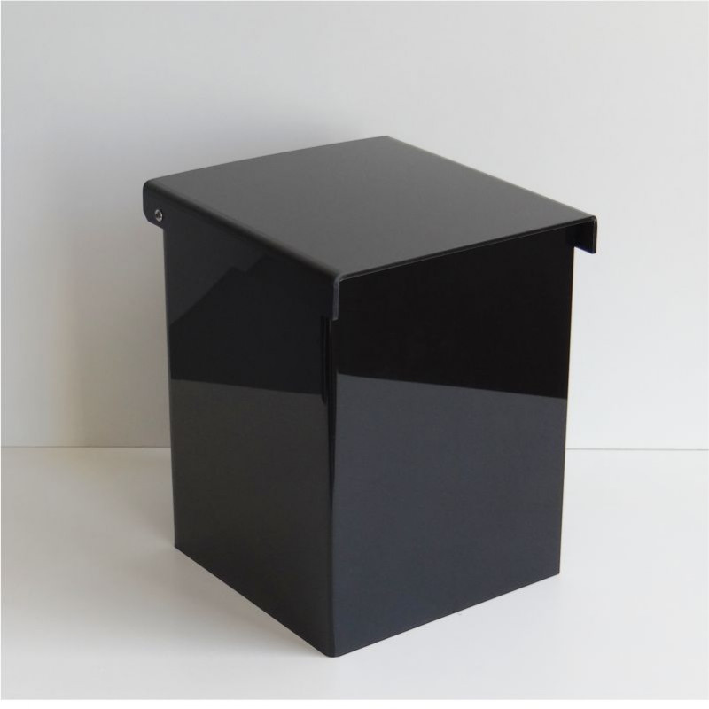 Lixeira quadrada alta com tampa articula em acrílico com suporte interno para saco plástico.