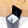 Lixeira quadrada alta com tampa articula em acrílico com suporte interno para saco plástico.