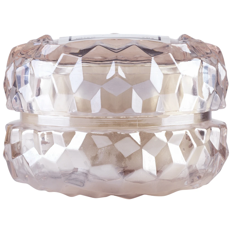 O vidro da coleção Roses é texturizado com um padrão de cubo geométrico clássico em 3D e colorido para combinar com a rosa que serviu de inspiração para a fragrância e embalagem. Empilhe, empilhe, use sempre mais de um, porque quem está contando?