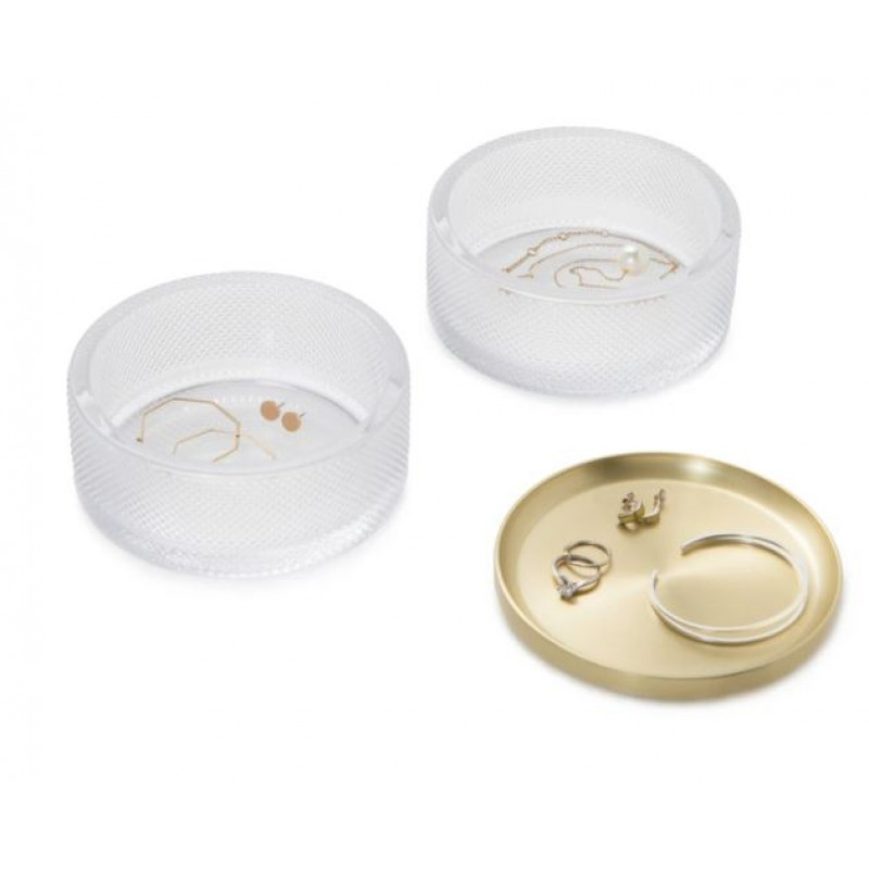 Design moderno: O Tesora da Umbra usa materiais inesperados para criar uma caixa de joias moderna que é tão bonita quanto funcional. a tampa de metal folheado e o design da caixa de duas camadas têm um impacto visual em sua decoração moderna