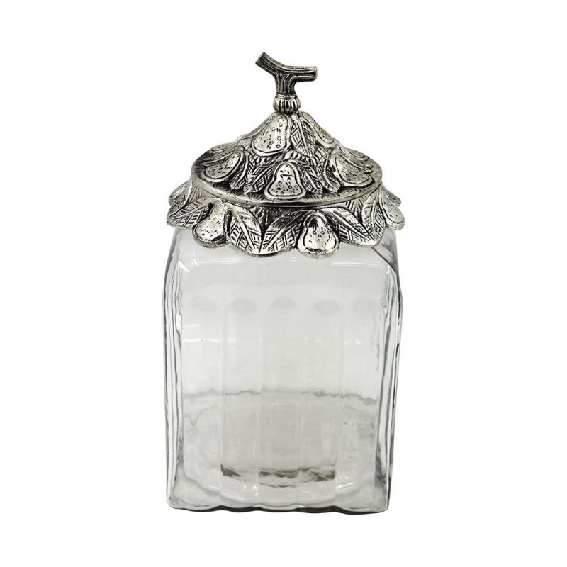 Para decorar qualquer ambiente, esse pote de Vidro Martelado traz rusticidade e a tampa em Metal elegância.