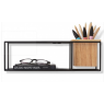 Contém uma pequena caixinha de madeira removível, que serve para colocar canetas, acessórios e plantas (vem com encaixe plástico que previne o vazamento de água).