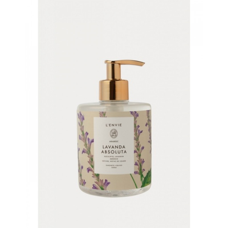 O Sabonete Líquido Lavanda Absoluta 350ml é indicado para todos os públicos, pode ser utilizado na lavagem das mãos e corpo. Sua concentração de fragrância proporciona uma maior perfumação. Com uma nova identidade visual a linha Arabesc traduz suas fragrâncias por meio de aquarelas desenhadas nas embalagens. As ilustrações foram feitas por Bella Mary O’Mahony, ilustradora apaixonada pela natureza e residente na Nova Zelândia.