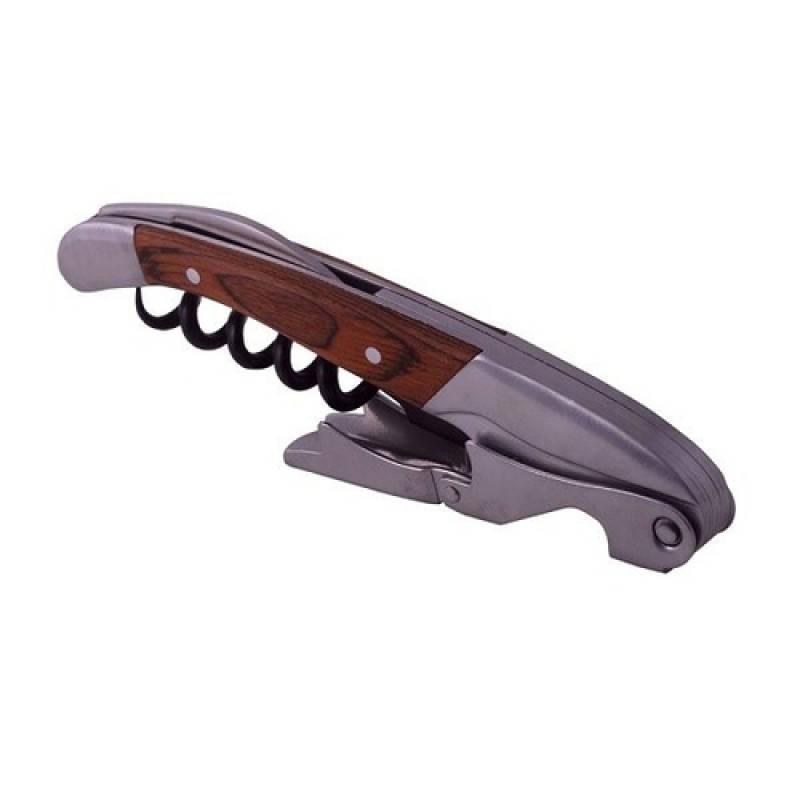 Este abridor produzido em metal com sofisticado acabamento em madeira conta com formato adaptável a diversos tipos de garrafa.