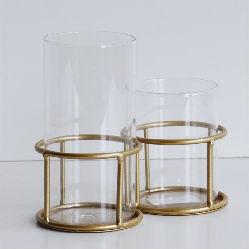 Solitário duplo decorativo em vidro com detalhes em dourado.