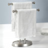 O toalheiro foi projetado com metal forte e acabamento elegante em níquel