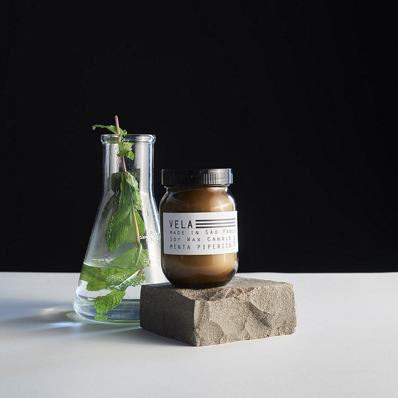 Vela produzida à base de soja com óleo essencial, sem adição de químicos ou sintéticos.