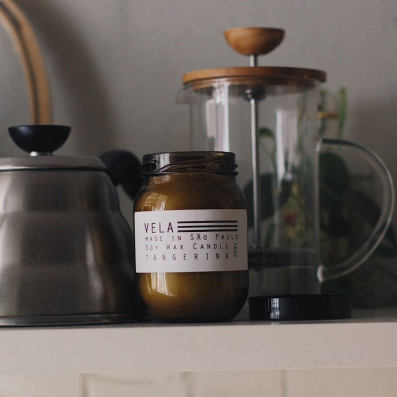 Vela produzida à base de soja com óleo essencial, sem adição de químicos ou sintéticos.