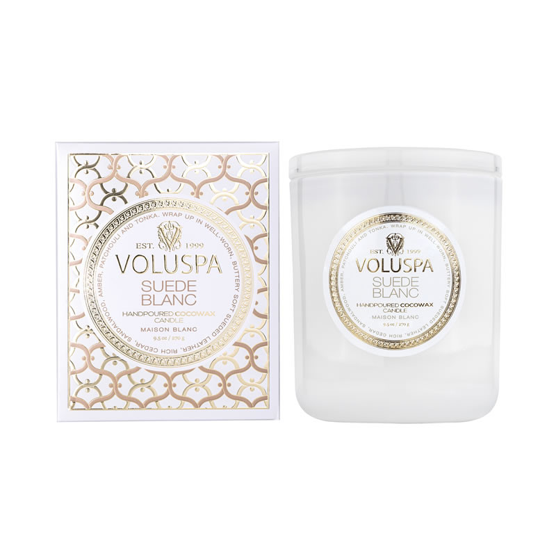 A coleção Maison Blanc é finalizada com sensações aconchegantes de camurça e uma refrescante brisa do oceano. Permita que esta brilhante mistura de fragrâncias levante seus ânimos e transforme qualquer dia sem brilho em uma celebração.