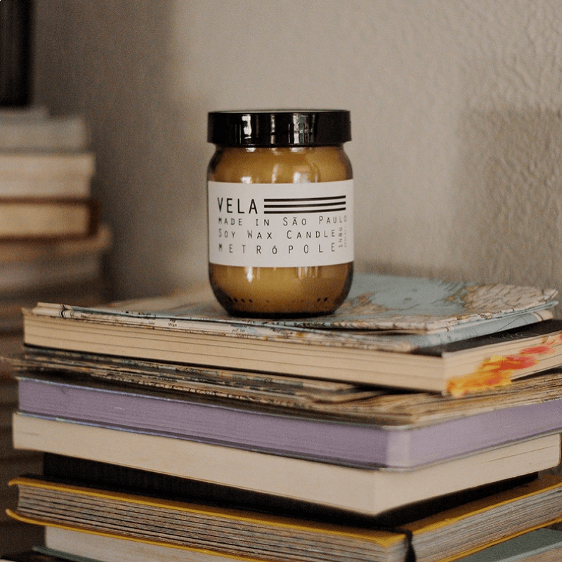 Vela produzida à base de soja com óleo essencial, sem adição de químicos ou sintéticos.