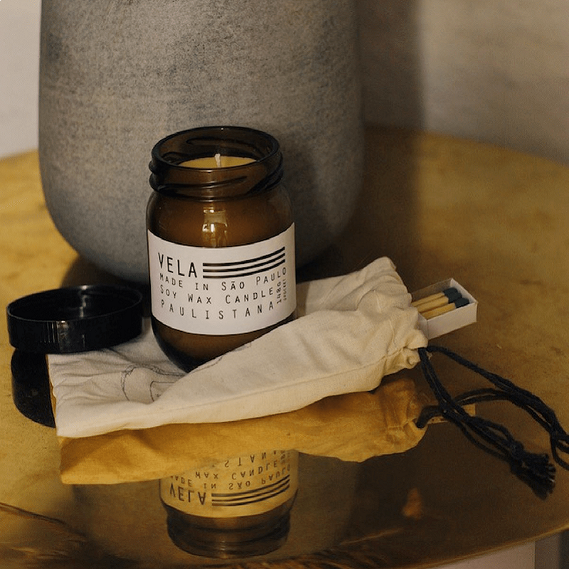 Vela produzida à base de soja com óleo essencial, sem adição de químicos ou sintéticos.